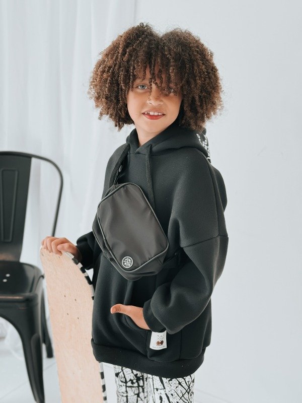 Riñonera unisex con tira regulable, permitiendo el uso en todas las edades. Confeccionada en tela impermeable. Un accesorio súper canchero para completar el look de tu peque