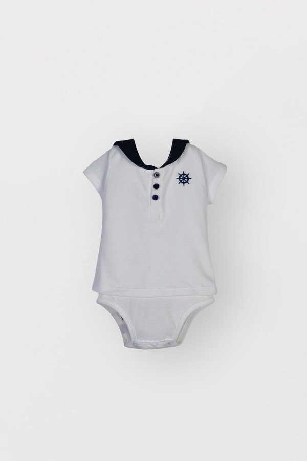 Body remera de jersey de algodón cuello tipo marinero. Es ideal para resolver un look más canchero.