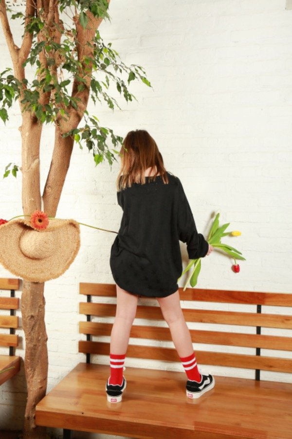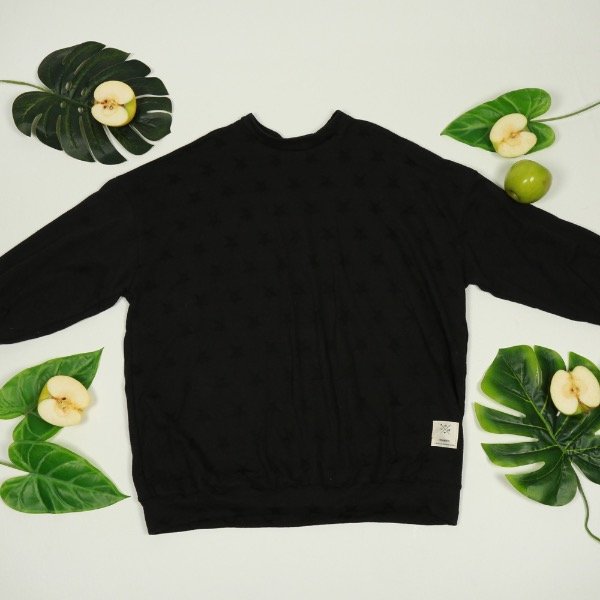 Un infaltable en el guardarropas de tu peque. Con estilo oversize, detalle de estrellas bordadas negras opacas, confeccionado en una suave tela ideal para estar abrigada, canchera y cómoda en las tardecitas de verano.