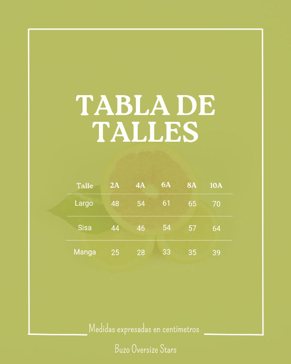 Disponible en talles que abarcan desde los 2 hasta los 10 años.