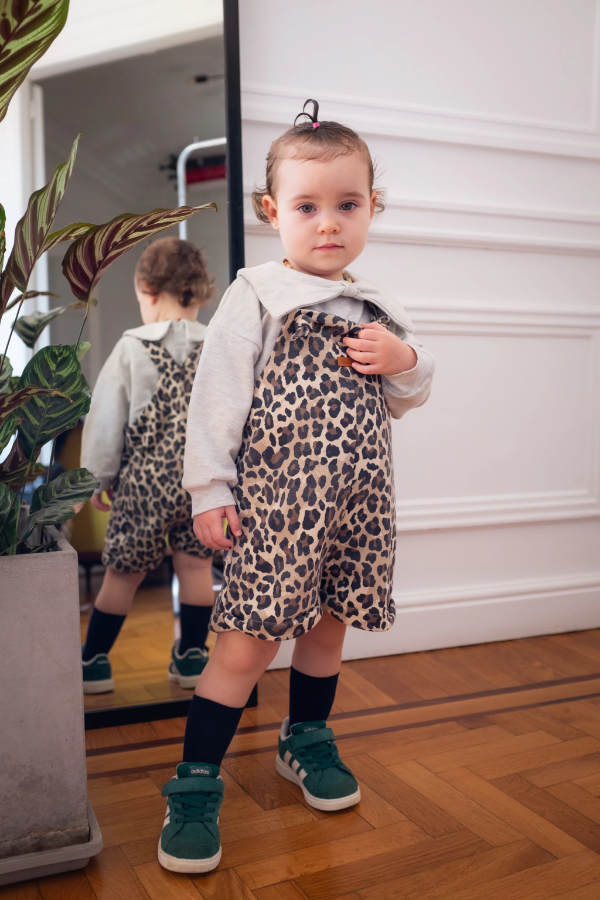 El Jardinero Guiseppina es una prenda clásica y versátil que no puede faltar en el guardarropa. Confeccionado en suave algodón rústico, este jardinero ofrece una textura ligera y una sensación de confort, perfectas para el uso diario y el juego sin restricciones.