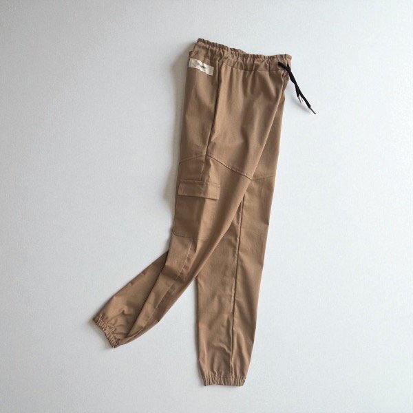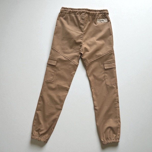 Pantalón Cargo confeccionado en gabardina con lycra con recortes y cordón de algodón en cintura. Elástico en los tobillos para dar un corte chupinazo 3/4 de verano.
