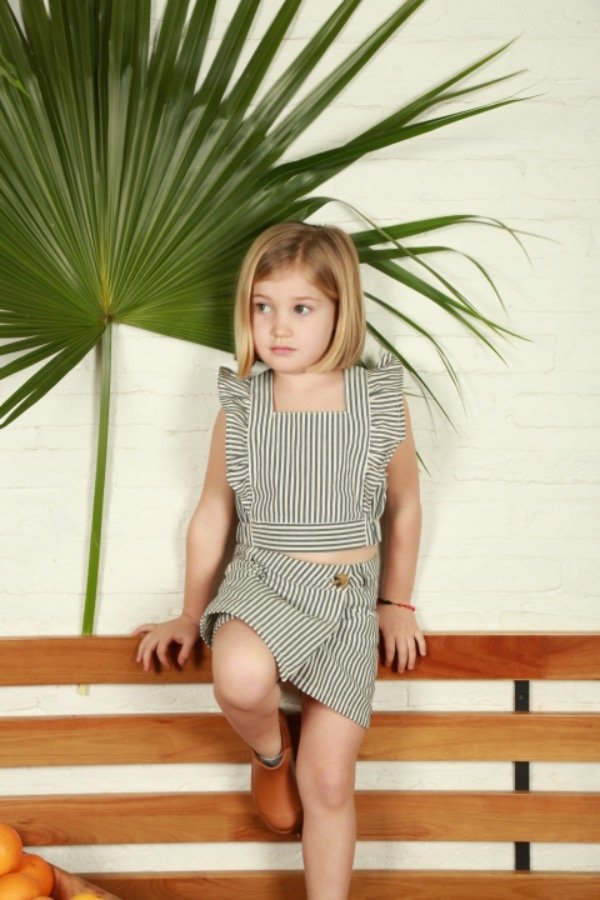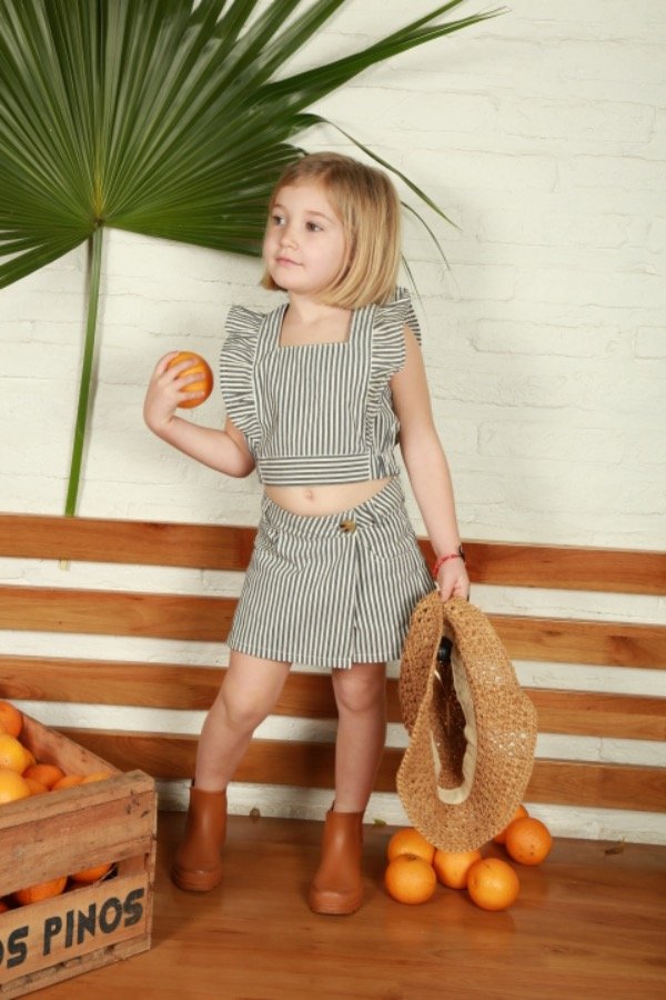 Detalle encantador de volados, un toque elegante que aporta el color gris y un diseño súper moderno confeccionado en tussor de alta calidad. Todo esto lo convierte en la prenda ideal para las pequeñas más coquetas.
